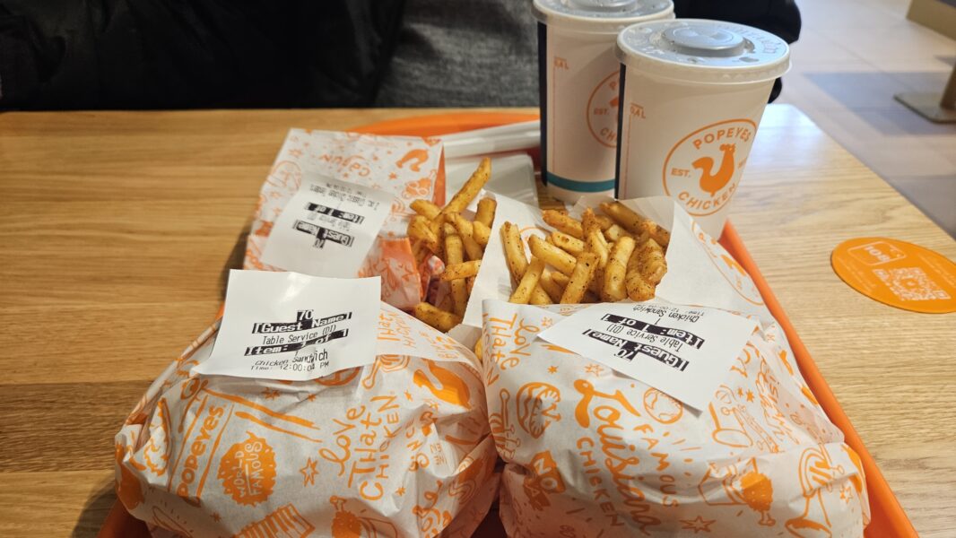 Cóż fakt niezaprzeczalny jest taki, że gdyby nie to, że razem z bratem przyjechałem robić zdjęcia miasta oraz trochę tego tak zwanego jarmarku, to nie wpadlibyśmy do Popeyes’a. A, że mieliśmy po drodze, bo i tak wszędzie szliśmy pieszo, to co nam szkodziło wpaść i spróbować jak to smakuje. A więc nie ma co owijać w bawełnę. Także…… zacznę od omówienia lokalu.